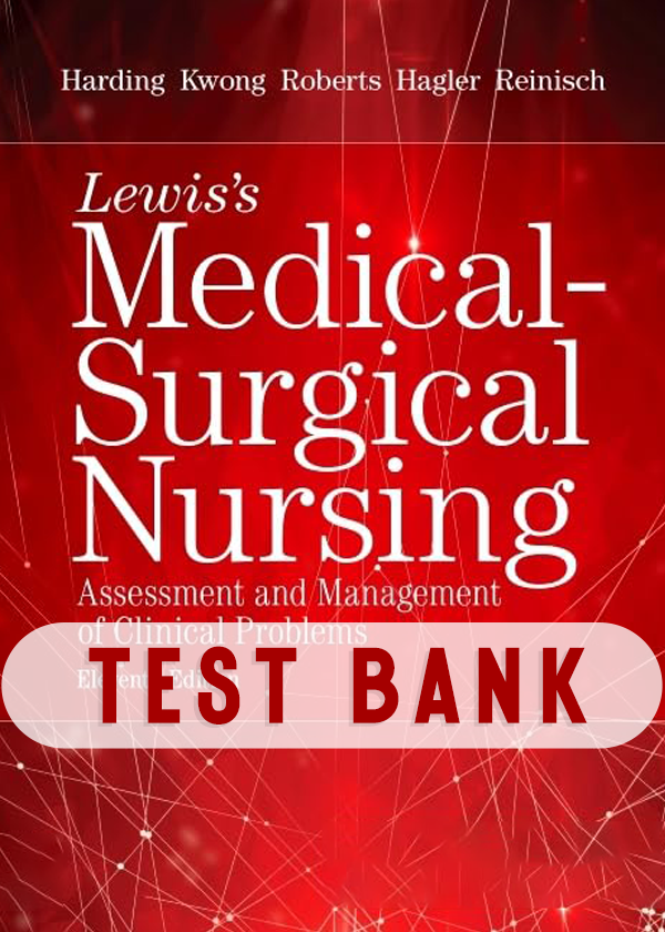 This expertly prepared Test Bank accompanies Lewis’s Medical-Surgical Nursing (11th Edition), offering a full set of high-quality, exam-style questions. It covers medical-surgical nursing concepts, clinical reasoning, and patient care strategies, helping nursing students excel in exams and NCLEX preparation.